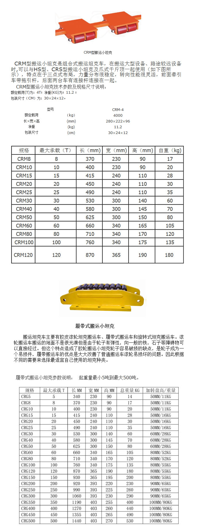 搬运小坦克(又称搬运坦克车、搬运工具车)是一种可以替代传统以滚杠为搬运工具的搬运设备。
