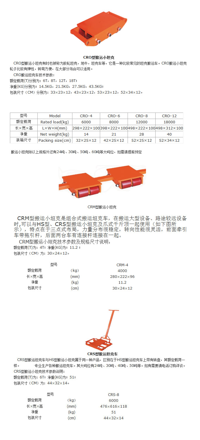 搬运工具坦克车(搬运工具车)可以单独使用,也可以多台一起使用。单台可载重15吨,