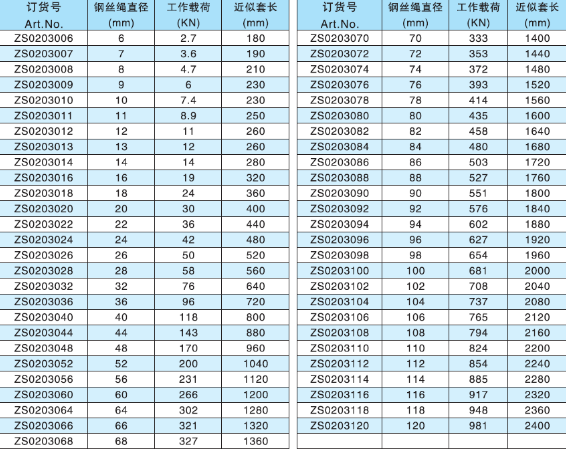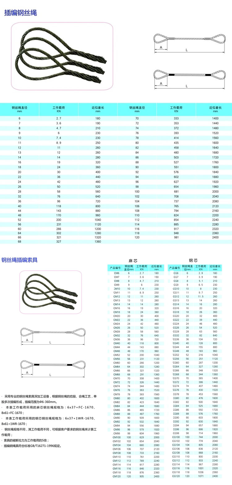 二、插编钢丝绳索具参数