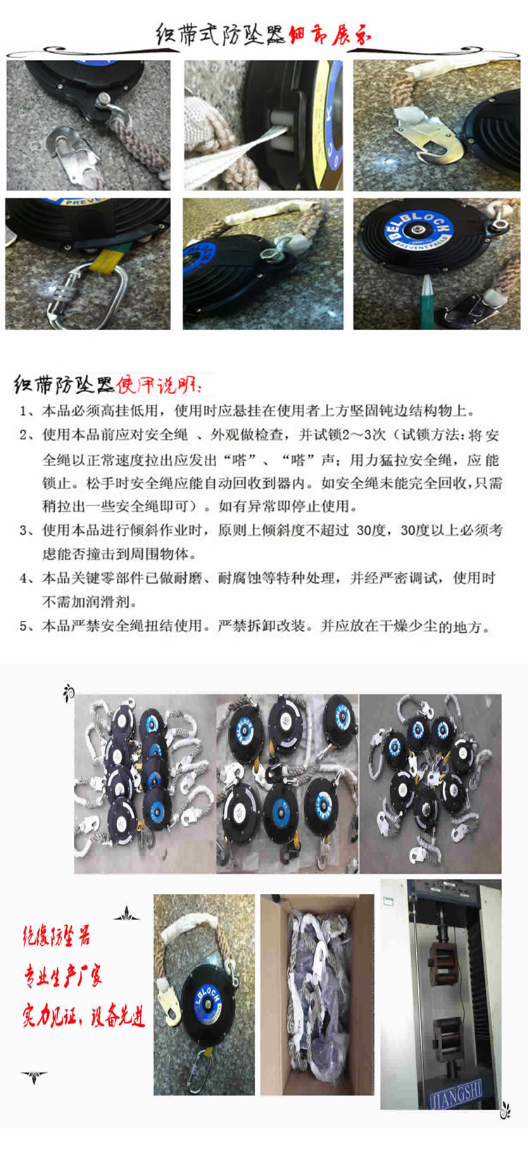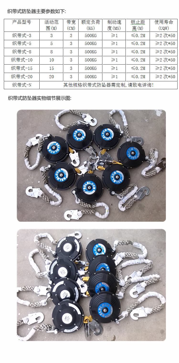 • 产品概述:织带式防坠器